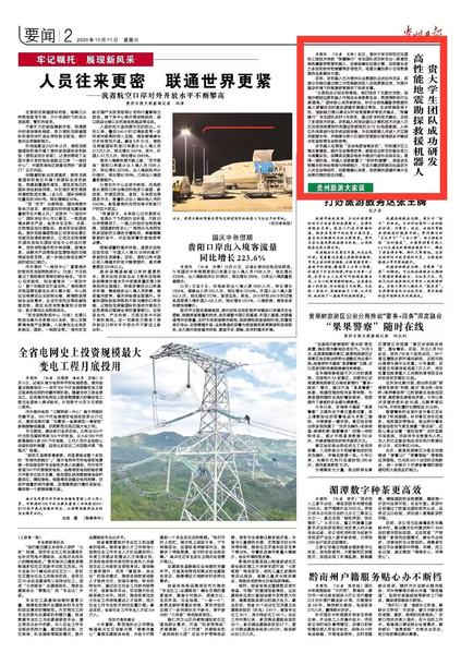 貴大新聞網(wǎng)訊(溪山融媒中心)近日,貴州大學北阿拉巴馬國際工程技術(shù)學院“智援未來” 學生團隊成功研發(fā)出一款高性能地震勘探救援機器人,該機器人利用5G通訊技術(shù)對機器進行遠程控制傳輸,以及邊緣化計算機技術(shù)對機器人在進入災區(qū)后使用深度相機和雷達所獲取的2D與3D地圖數(shù)據(jù)與人體紅外信息進行保存或遠程傳輸,為后續(xù)救援人員進入災區(qū)提供數(shù)據(jù)支持,并能夠與狹小區(qū)域的受困群眾取得聯(lián)系并輸送水和食物等生命物資等。攻克行業(yè)痛點,核心技術(shù)凸顯差異化優(yōu)勢——當前市面上的地震勘探救援機器人普遍存在三大痛點:復雜廢墟環(huán)境通過率低、生命探測易受干擾、續(xù)航能力難以滿足長時間救援需求。該學生團隊歷時5年研發(fā),通過多學科技術(shù)融合,實現(xiàn)了關(guān)鍵性能的跨越式提升:生命地圖繪制系統(tǒng)——通過構(gòu)建災區(qū)德三維模型,實現(xiàn)對生命的快速高效搜救。使用激光雷達進行SLAM建圖可獲得機器人在環(huán)境下的二維地圖以及使用深度相機來實現(xiàn)3D地圖的建構(gòu)并且通過深度相機客戶可得到機器人的視覺信息。該深度相機上搭載了紅外感應器,機器人在進入災區(qū)后可實現(xiàn)紅外傳感以發(fā)現(xiàn)生命體征的有無。復合動力單元系統(tǒng)——自主研發(fā)減震系統(tǒng)以增強自我保護能力。自主研發(fā)的減震系統(tǒng)確保了機